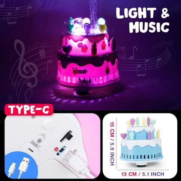 🎵 Festive Music & Lights: Ismein pyara birthday music bajta hai aur colorful LED lights jalti hain, jo party ka mahol bana deti hain.