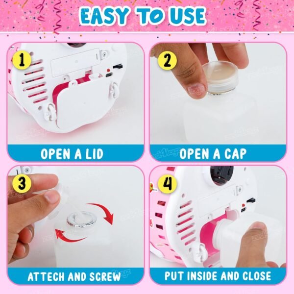 Box Mein Kya Milega? 1 x Cake Bubble Machine, 1 x USB Charging Cable, 1 x Bubble Solution Bottle.