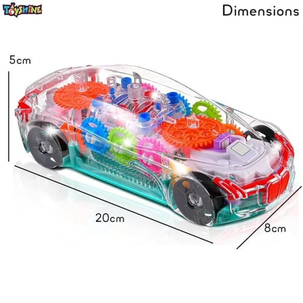 Visible Mechanical Gears: Features a full set of vibrant, multi-colored gears that rotate in sync as the car moves, teaching basic mechanical principles.