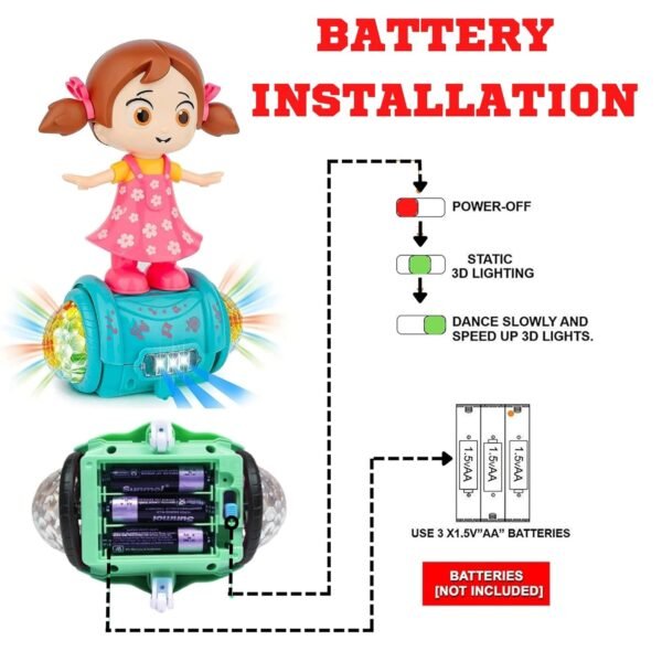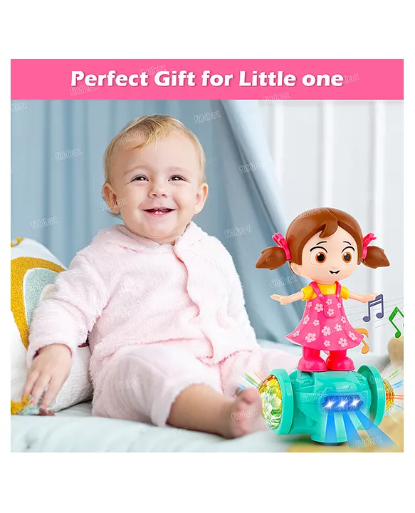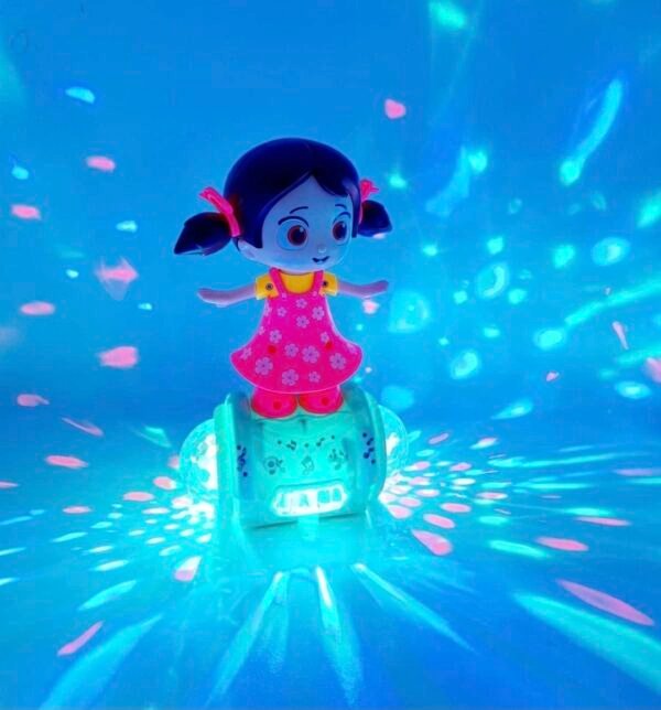 KidWiz Musical Dancing Girl Doll – 360° Rotating Scooter Toy with 3D Projection Lights