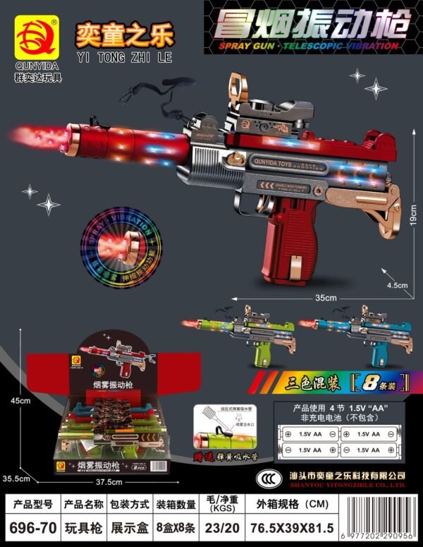 Realistic Smoke Exhaust: The muzzle flashes with red lights and releases a cool mist, mimicking real firing action.