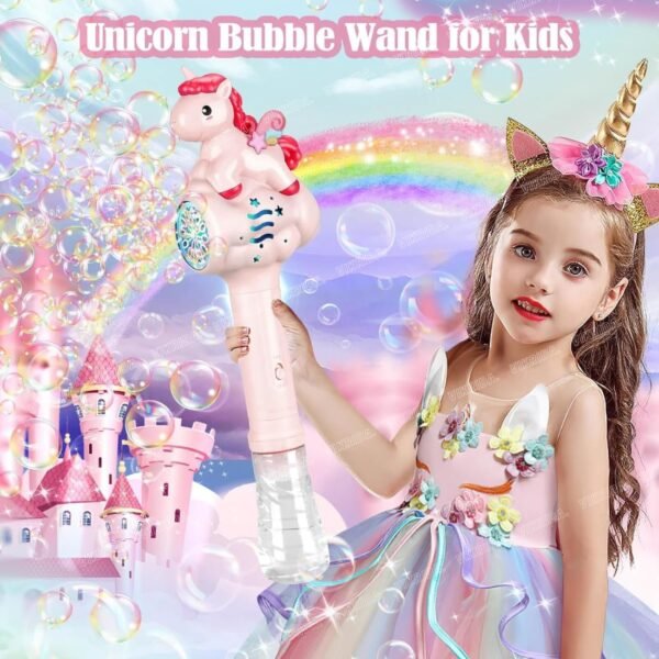 KidWiz Unicorn Bubble Tale Wand – Automatic Rainbow Horse Bubble Maker with Lights & Music